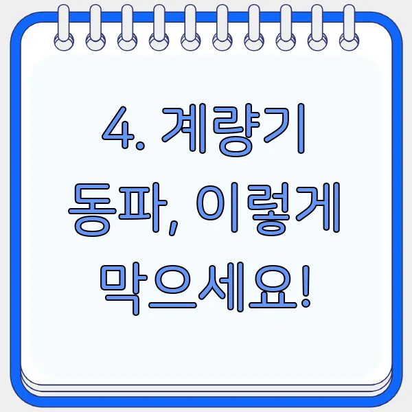 보일러와 배관만큼 중요한 계량기 동파 방지! 계량기함 내부를 꼼꼼하게 보온하고, 혹한에는 헌옷이나 담요 등으로 덮어주는 것이 좋아요. 계량기함 뚜껑의 틈새는 테이프로 막아 찬바람이 들어가지 않도록 꼼꼼하게 막아주세요. "계량기 동파, 더 이상 두려워하지 마세요!" 💪