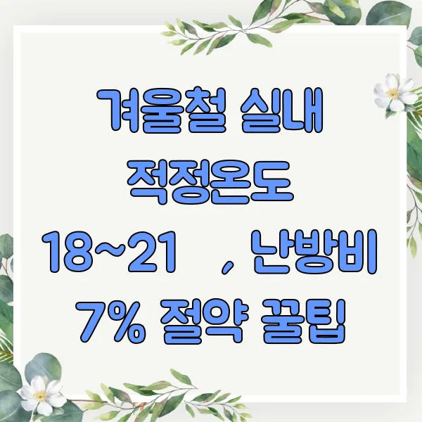추운 겨울, 난방비 폭탄 걱정 없이 따뜻하게 보내는 방법? 바로 겨울철 실내 적정온도 18~21℃를 유지하는 거예요! 이 작은 변화가 난방비 절약과 건강까지, 두 마리 토끼를 잡는 비결이랍니다. 1℃ 낮추기로 난방비 7% 절약 효과 를 볼 수 있다는 사실! 단열, 방풍, 스마트 난방 관리 꿀팁까지, 지금 바로 확인해보세요! #겨울철실내온도 #난방비절약 #에너지절약 #스마트난방