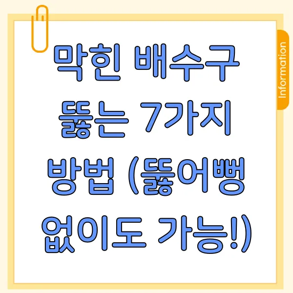 으악! 샤워하려는데 물이 안 빠져요?! 😭 싱크대 배수구가 막혀 설거지거리가 산더미처럼 쌓였다고요? 😱 당황하지 마세요! 막힌 배수구, 뚫어뻥 없이도 슝슝 뚫리는 7가지 마법 같은 비법을 대방출합니다!✨ 배수구 막힘 원인부터 해결, 예방까지 꿀팁 가득!💯 주방, 욕실 배수구 막힘 문제, 이제 걱정 끝!😄