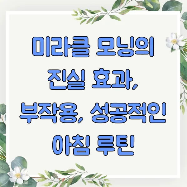 새벽 기상으로 삶을 바꾸는 '미라클 모닝'! 과연 마법같은 효과가 있을까요? 🤔 미라클 모닝의 진짜 효과와 숨겨진 부작용, 그리고 나만의 성공적인 아침 루틴 만드는 비법까지, 지금 바로 확인하세요! 자기 계발, 아침 습관, 생산성 향상, 수면 관리, 시간 관리 등 핵심 키워드를 중심으로 미라클 모닝의 A to Z를 파헤쳐 봅니다!