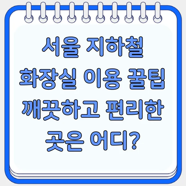 서울 지하철 여행 중 화장실 이용, 불편하셨던 적 있으시죠?😭 붐비는 환승역부터 낯선 관광지까지! 서울 지하철 화장실, 어디가 깨끗하고 편리할까요?🤔 이 포스트에서는 서울 지하철 화장실 이용 꿀팁 대방출! 환승역 화장실 분석부터 숨겨진 핫플레이스까지, 쾌적한 지하철 여행을 위한 필수 정보를 알려드릴게요!💖 "서울 지하철 화장실", "깨끗한 화장실", "화장실 꿀팁", "환승역 화장실", "지하철 여행 팁" 등 다양한 키워드로 여러분의 궁금증을 해결해 드립니다!