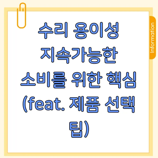 제품을 구매할 때 수리 용이성을 꼼꼼히 따져보는 습관을 길러보세요. 현명한 소비는 지속가능한 미래를 만드는 첫걸음이에요.