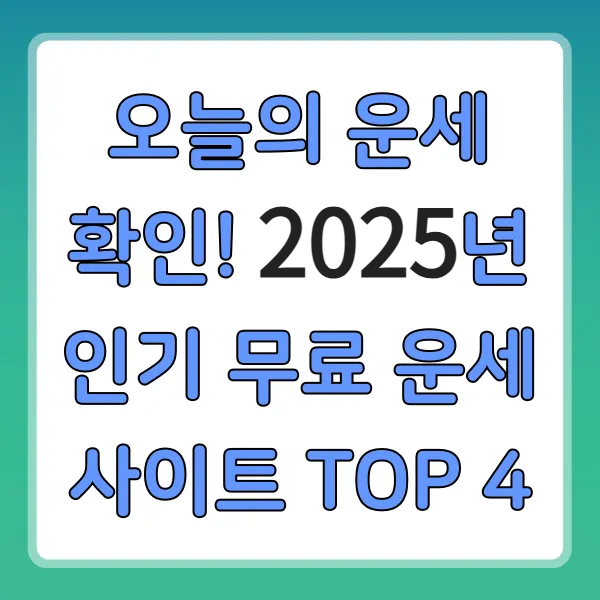 2025년, 여러분의 궁금증을 해결해줄 무료 운세 사이트 TOP 4를 소개합니다! 띠별 운세, 토정비결, 사주, 궁합, 타로 등 다양한 운세 정보를 제공하는 사이트들을 꼼꼼히 비교 분석했어요. 전문가의 깊이 있는 해석부터 가볍고 재미있는 콘텐츠까지, 취향에 맞는 운세 사이트를 찾아보세요!✨ 신년 계획, 인생 고민, 답답한 마음, 모두 운세와 함께 풀어보는 건 어떠세요? #오늘의운세 #무료운세 #운세사이트 #2025년운세 #운세보기