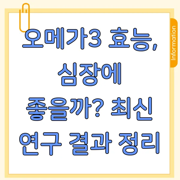 오메가3는 혈관 건강을 개선하고 염증을 줄여 심혈관 질환 위험을 감소시키는 데 도움을 줄 수 있어요. 특히 심근경색, 뇌졸중, 심부전 등 심각한 심혈관 질환 발생률 감소에 효과적이라는 연구 결과들이 눈길을 끌고 있답니다.