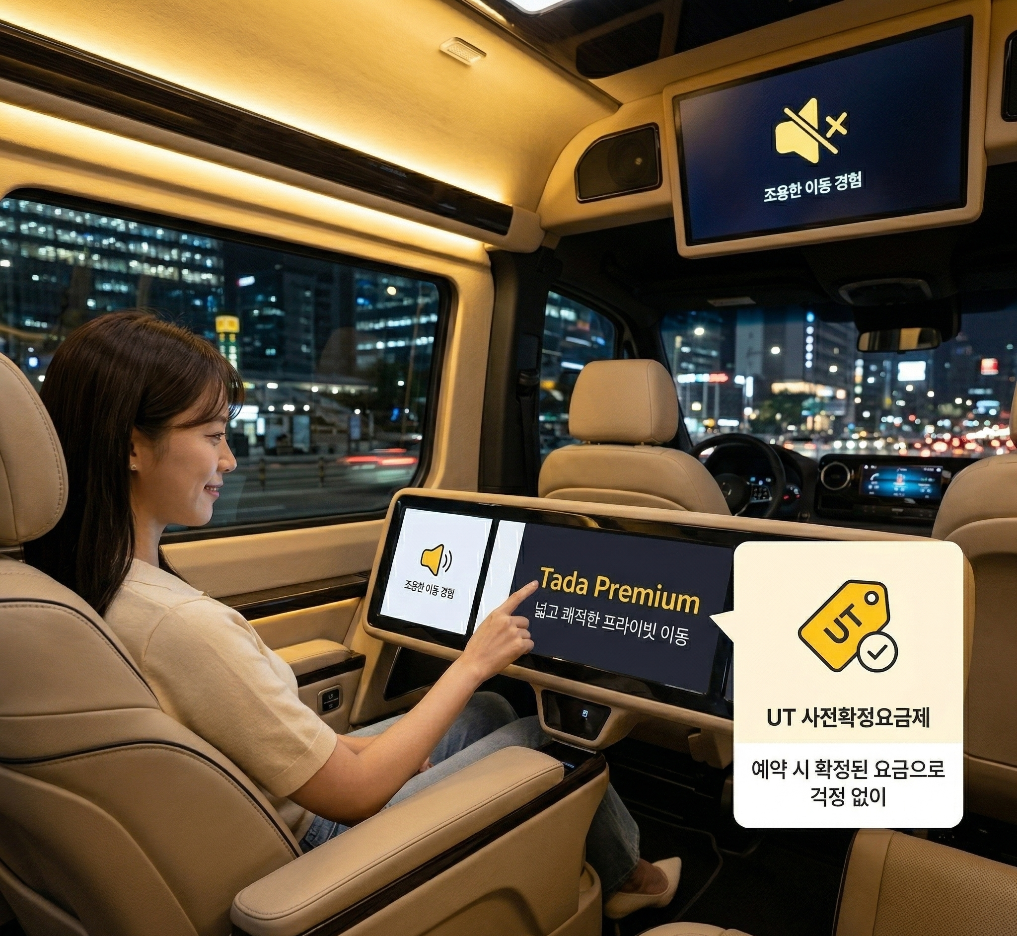 - 조용하고 쾌적한 프리미엄 이동, 가족 단위 탑승 → 타다