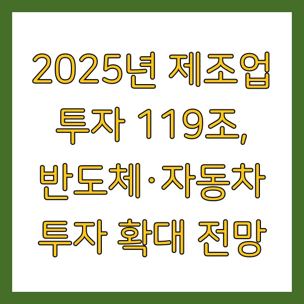 경기 침체?! 물가 상승?! 끝없는 불확실성 속에서 숨 막히는 경제 뉴스만 접하다 보면 한숨만 푹푹 나오시죠?😥 저도 그 마음, 너무나 잘 압니다. 하지만! 오늘은 잿빛 경제 전망 속에서 반짝이는 희망의 불빛을 발견했어요! 무려 119조 원 규모의 제조업 투자 계획! 특히 미래 먹거리 산업인 반도체 와 자동차 분야에 집중 투자?!🤩 이 소식, 자세히 들여다볼까요~? 키워드는 #제조업투자 #반도체 #자동차 #경제전망 #투자확대 입니다!