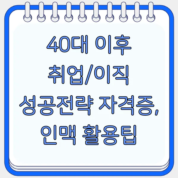 40대, 인생 2막의 시작점에서 새로운 커리어를 꿈꾸시나요? 경력 개발과 이직 성공을 위한 핵심 전략, 자격증 취득, 그리고 든든한 인맥 활용 꿀팁까지! 지금 바로 확인하세요. 4050 세대의 성공적인 커리어 전환, 더 이상 꿈이 아닌 현실입니다! 자기소개서 작성부터 면접 준비, 그리고 4차 산업혁명 시대에 대비한 자격증 취득 전략까지, 40대 이후 경력 관리에 필요한 모든 것을 담았습니다.